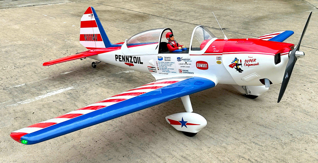 Designed for 60–76cc powerplants, this aircraft delivers exceptional aerobatic capability while maintaining the unmistakable lines and charm of the original de Havilland Super Chipmunk.