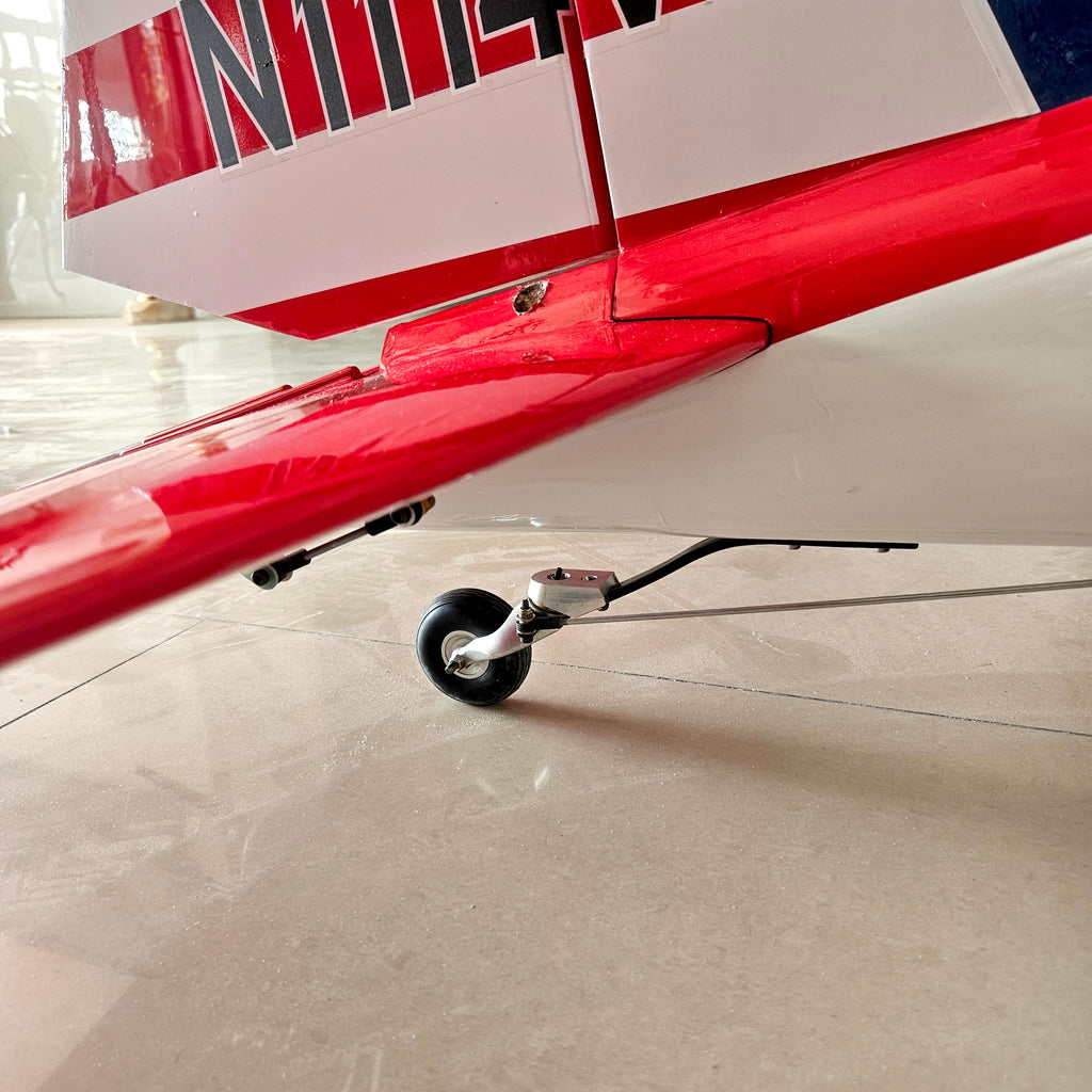 The fixed main landing gear with CNC oleo struts provides both authentic ground handling and visual realism, while the CNC aluminum tail gear completes the true-to-scale look.