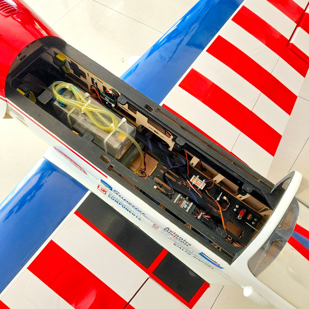 Every airframe component is precision-built from premium balsa and plywood, reinforced with carbon fiber in high-stress areas to ensure exceptional durability and agility without compromising performance. The entire airframe is applied with fiberglass laminate plates at all critical plywood. This reinforcement dramatically increases torsional rigidity, impact resistance, and long-term durability